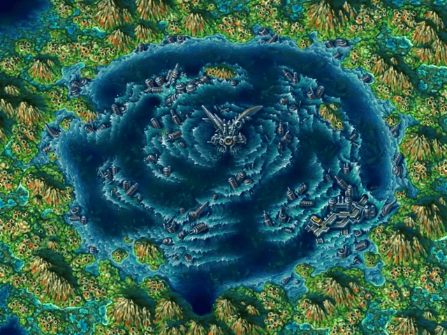 Chrono Cross focuses a lot on water. The world map is rather similar to a world map for us humans: you have some major land masses and a lot of water in-between. You travel through that water on a tiny boat to get around, and you don’t really need me to tell you that part I’m sure. As a result, much of the ambient music has a coastal or nautical feel to it, and that theme is expounded on with the prevalence of songs that invoke the spirit of small villages or small island communities. Larger scale tunes are reserved for large areas, major hubs and major cities. The running motif, as with most good soundtracks, is that of “Time’s Scar”, being rehashed in various formats such as the melancholy “Lost Fragments”, a somber little jiggle that fits perfectly as a slow walk through a sad locale.